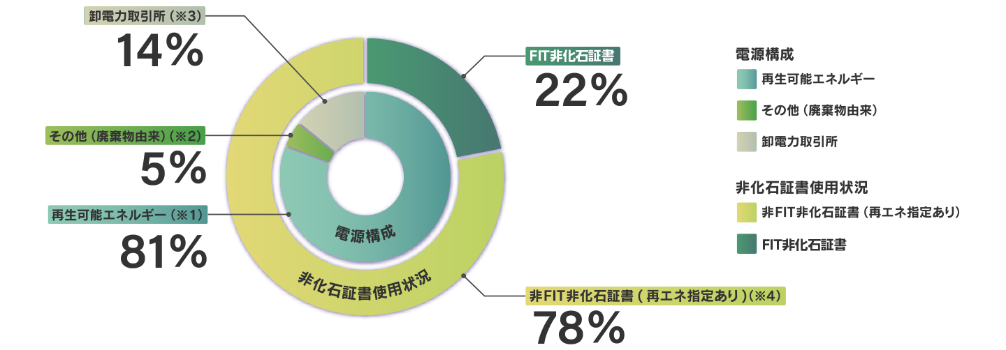 (※1)当社が調達先としている廃棄物発電所の電気のうち、生ごみ等のバイオマス分由来の発電分(非FIT・再エネ)が該当します。